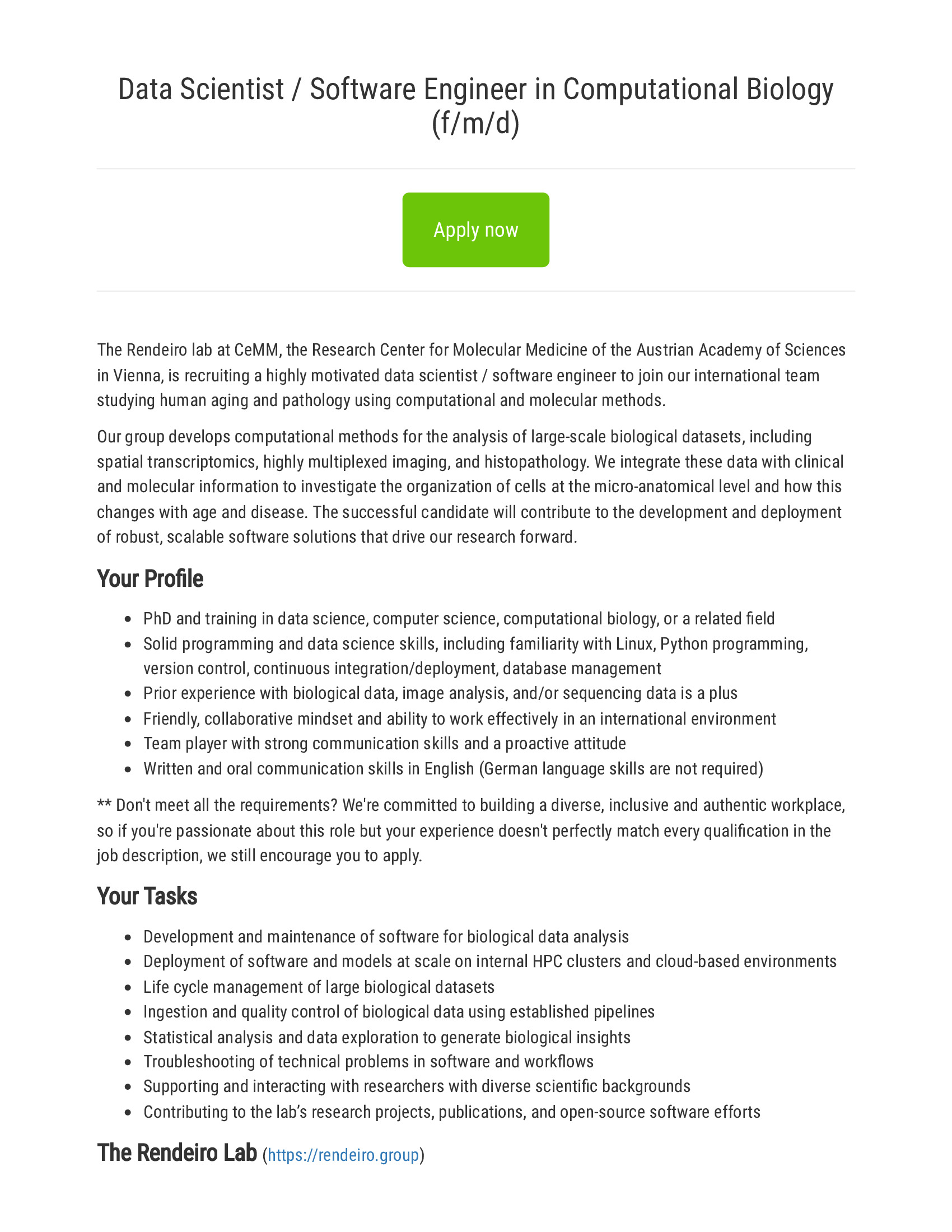 Data Scientist / Software Engineer in Computational Biology(f/m/d)